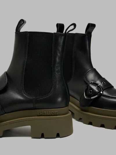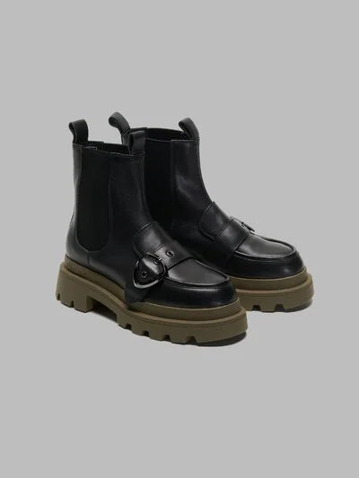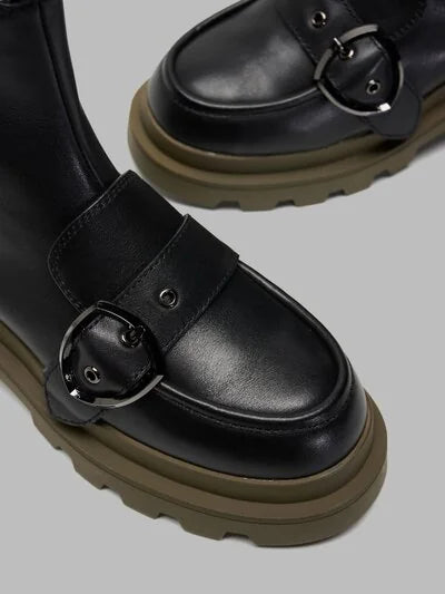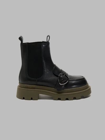 Este botín representa la esencia de la fusión de estilos. Una combinación equilibrada e innovadora de un botín chelsea con el clásico mocasín con hebilla. Una propuesta vanguardista para los exploradores de tendencias.